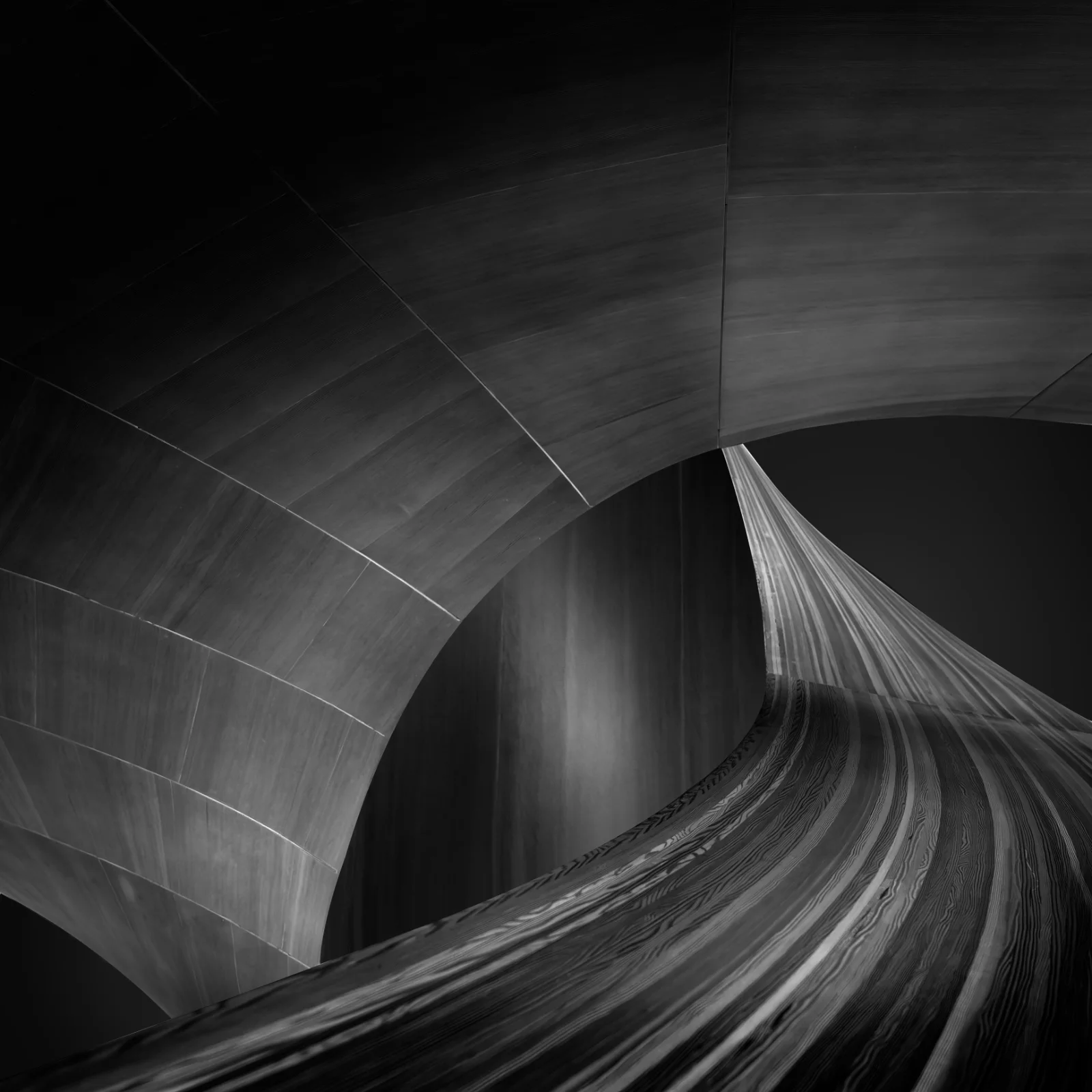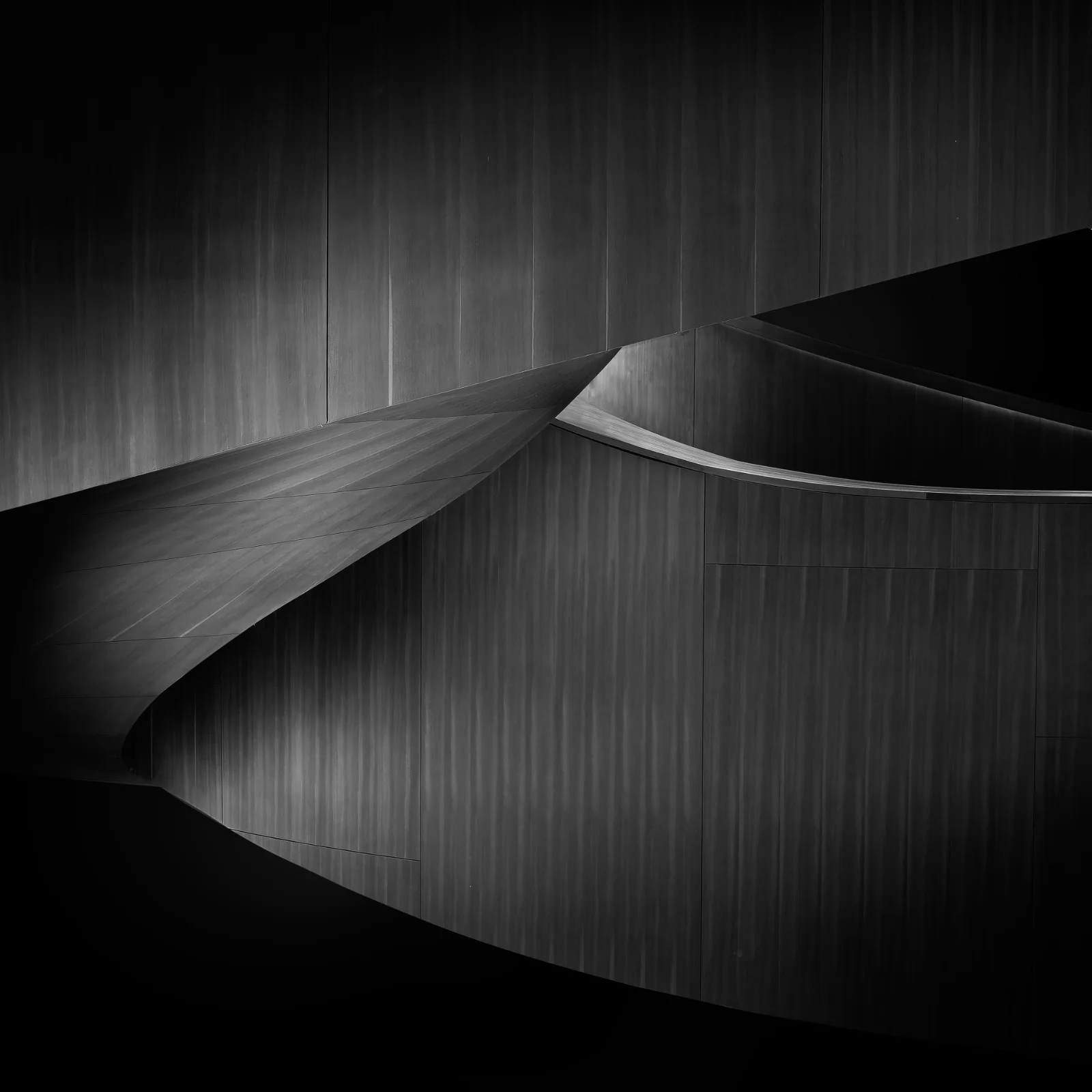Designed by Frank Gehry, this iconic staircase at the Art Gallery of Ontario, is captured in this series by highlighting the shape, form and texture of the Douglas fir timber cladding. These architectural features are also showcased through the interplay of light and shadow.