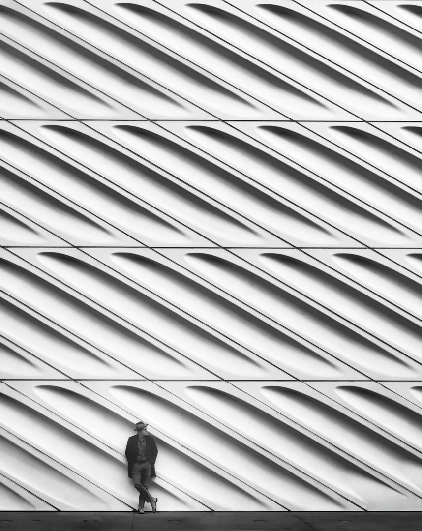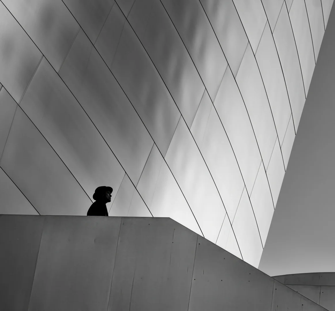 A collection of cityscape images that all feature a human element on an architectural canvas.