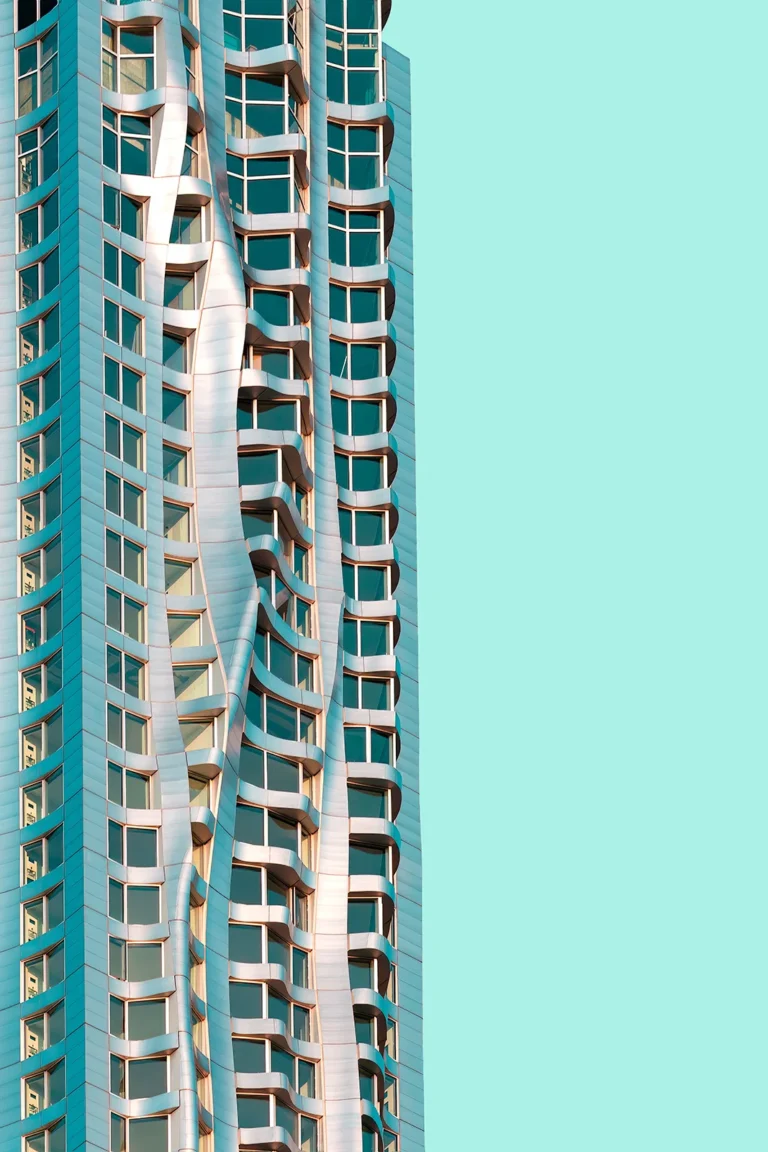 A collection of aleatory skyscrapers from different parts of de world exploring their shapes and colors in a graphic and bold style.