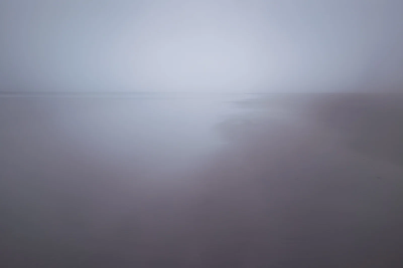 Whilst on a Northumberland Beach, the temperature dropped and the sea fret moved in engulfing the entire beach; behind it the sun rose creating a diffused light. I used a longer exposure to soften the tide, a wonderful somewhat eerie moment, beautiful to witness.