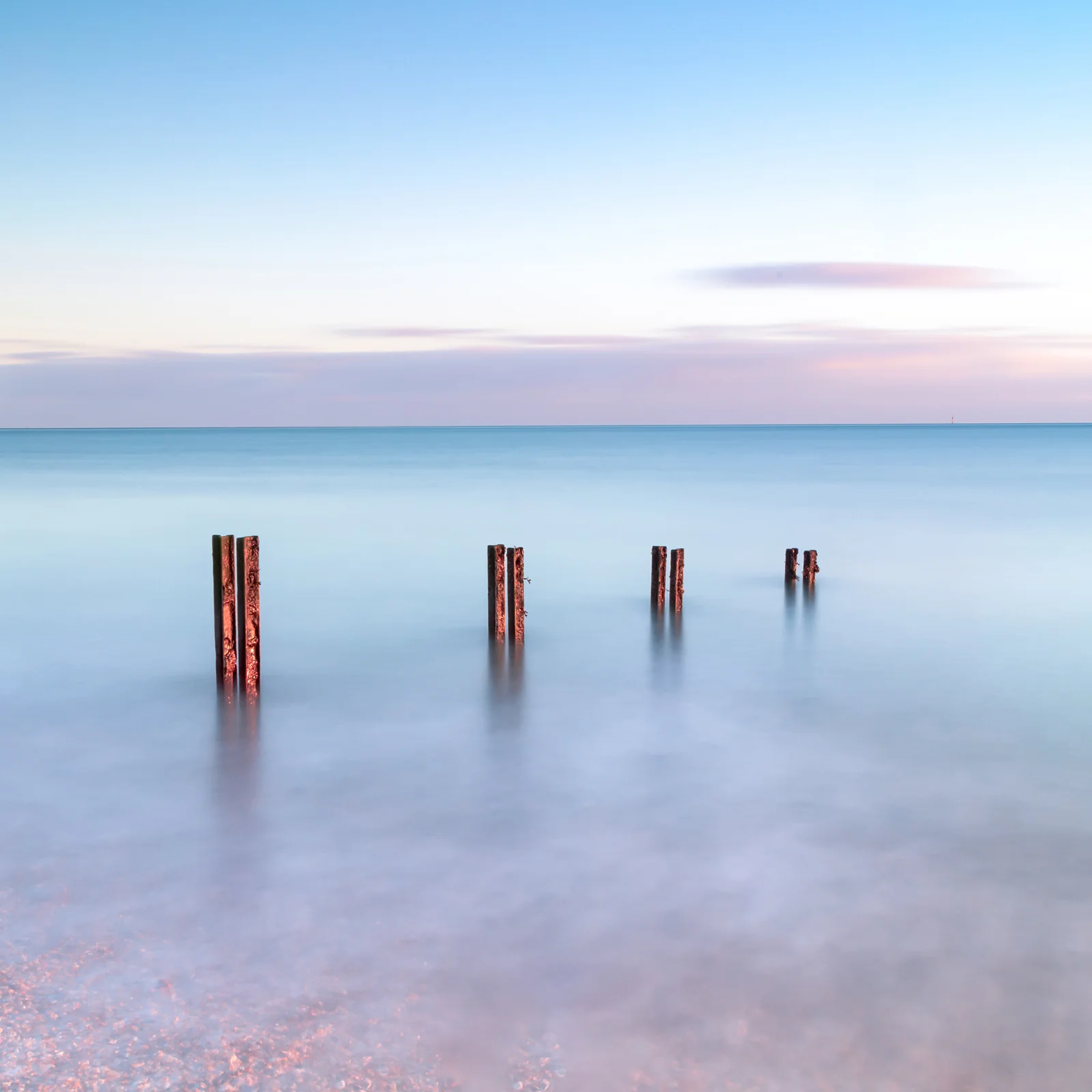 Context: I have always had a fascination for groynes, not only for their satisfactory geometry, but aldo for their mysterious isolated positions. They stand so still and appear mundane, yet hold such purpose for coastal protection and conservation. I like to photograph them for that very reason, to reignite thier significant purpose and existence.