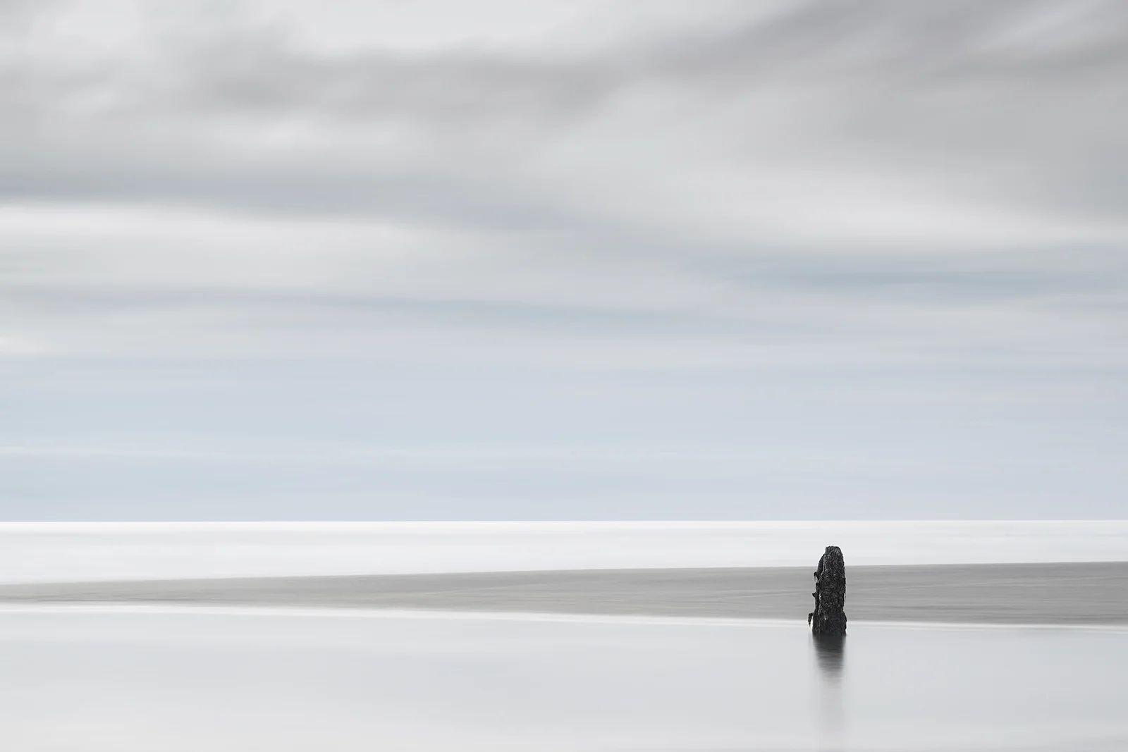 Along the Oregon coast, the “Ghost Forest” beach presented me with a scene of serene simplicity. Skeletal remain of an ancient tree and graceful lines emerging from the sand made it intriguing. A soft pastel palette washes over the image – the muted blues and gentle grays of the sky contributes to the sense of peace and calm of the scene.