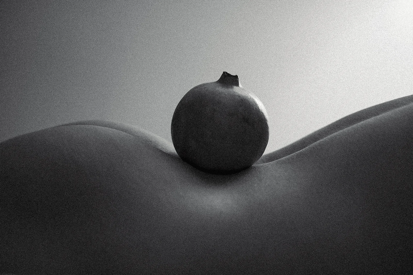 One day, I was thinking about how to merge temptation and desire in a way that feels calm—quiet, yet lingering. Then I saw a pomegranate left in my fridge.