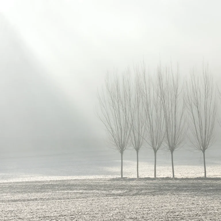 A foggy and cold winter morning at home