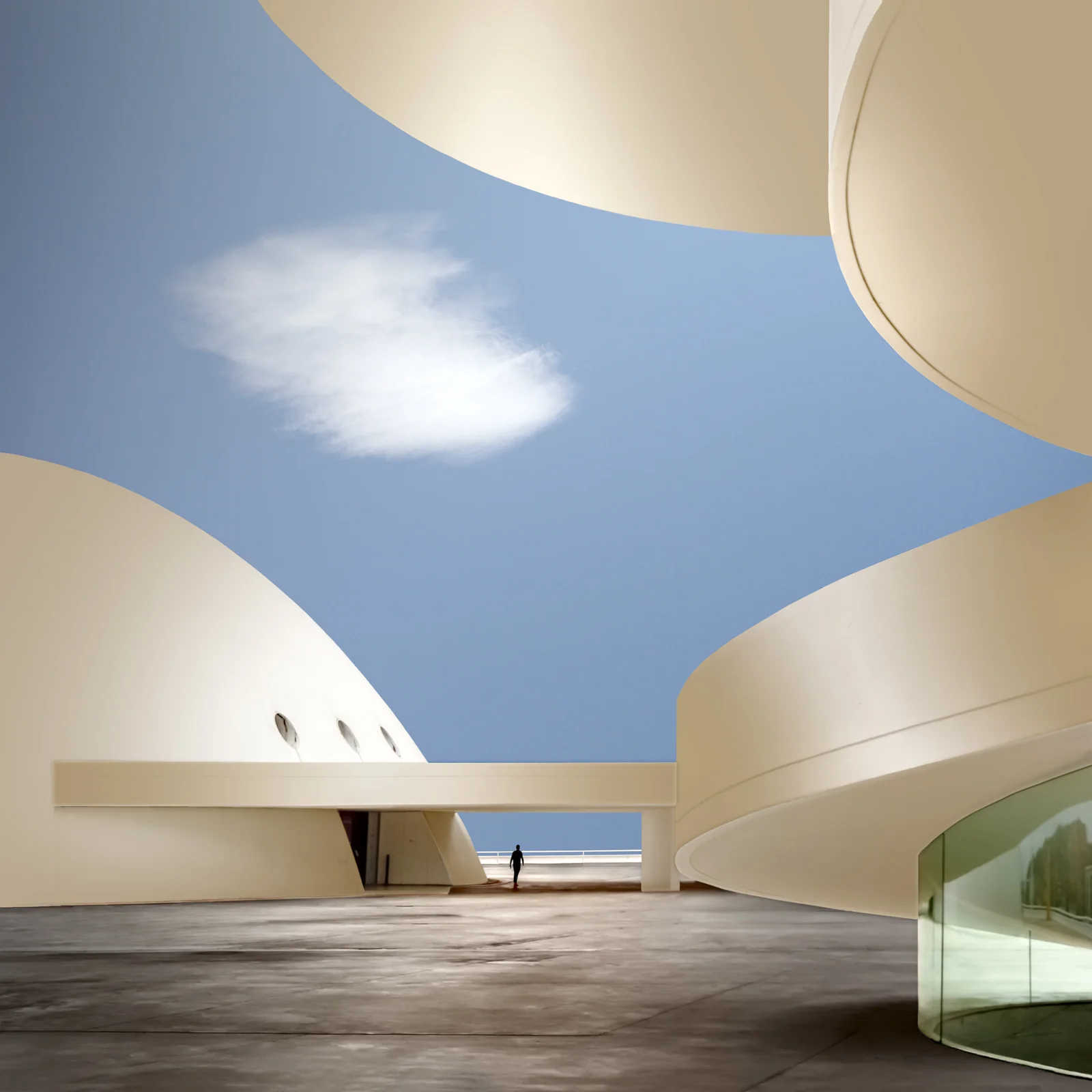 The photo is meant to be an allegory of what the streets will look like in the near future. The photo was actually taken at the Niemeyer Cultural Complex in the city of Avilés, Spain.