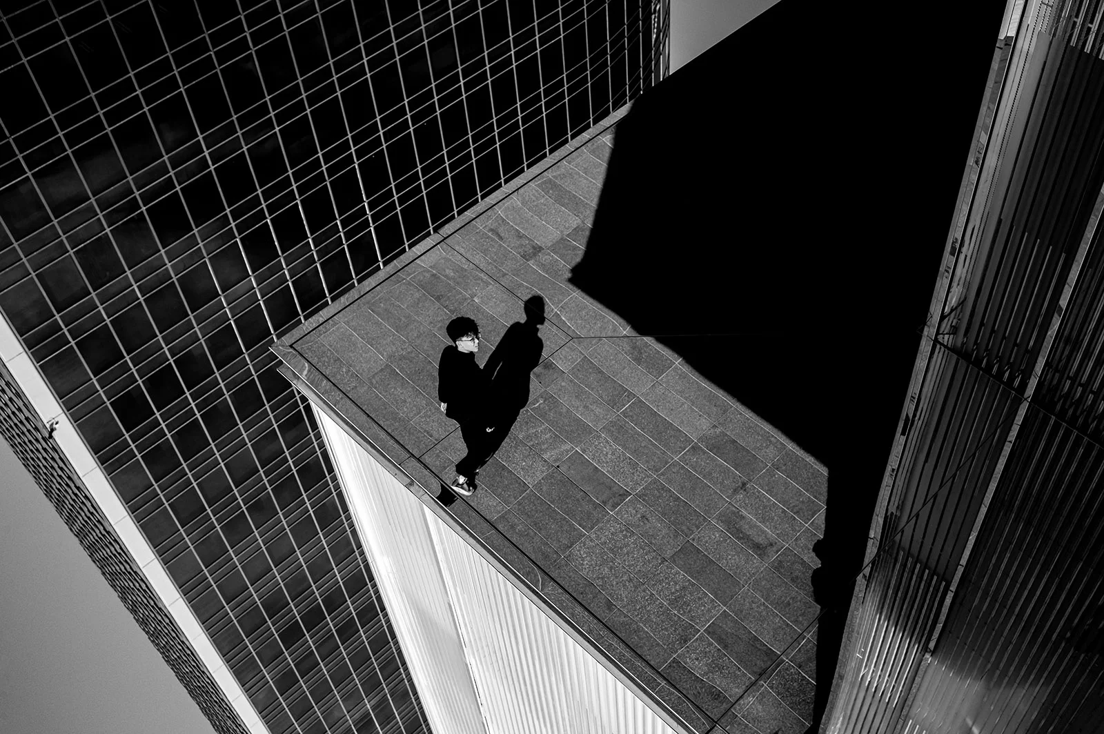Behind the photos, my intention was to express a sense of uncertainty and danger. Facing the future, human beings are too small. We don’t know what tomorrow will bring, and we can’t fully control our own destiny. There are many lines in this photo, all of them slanted, and they create a strong instability. At the same time, the edge of the building seems like the end of the world. Human beings cannot move forward but can only go back. This photo is like a warning.