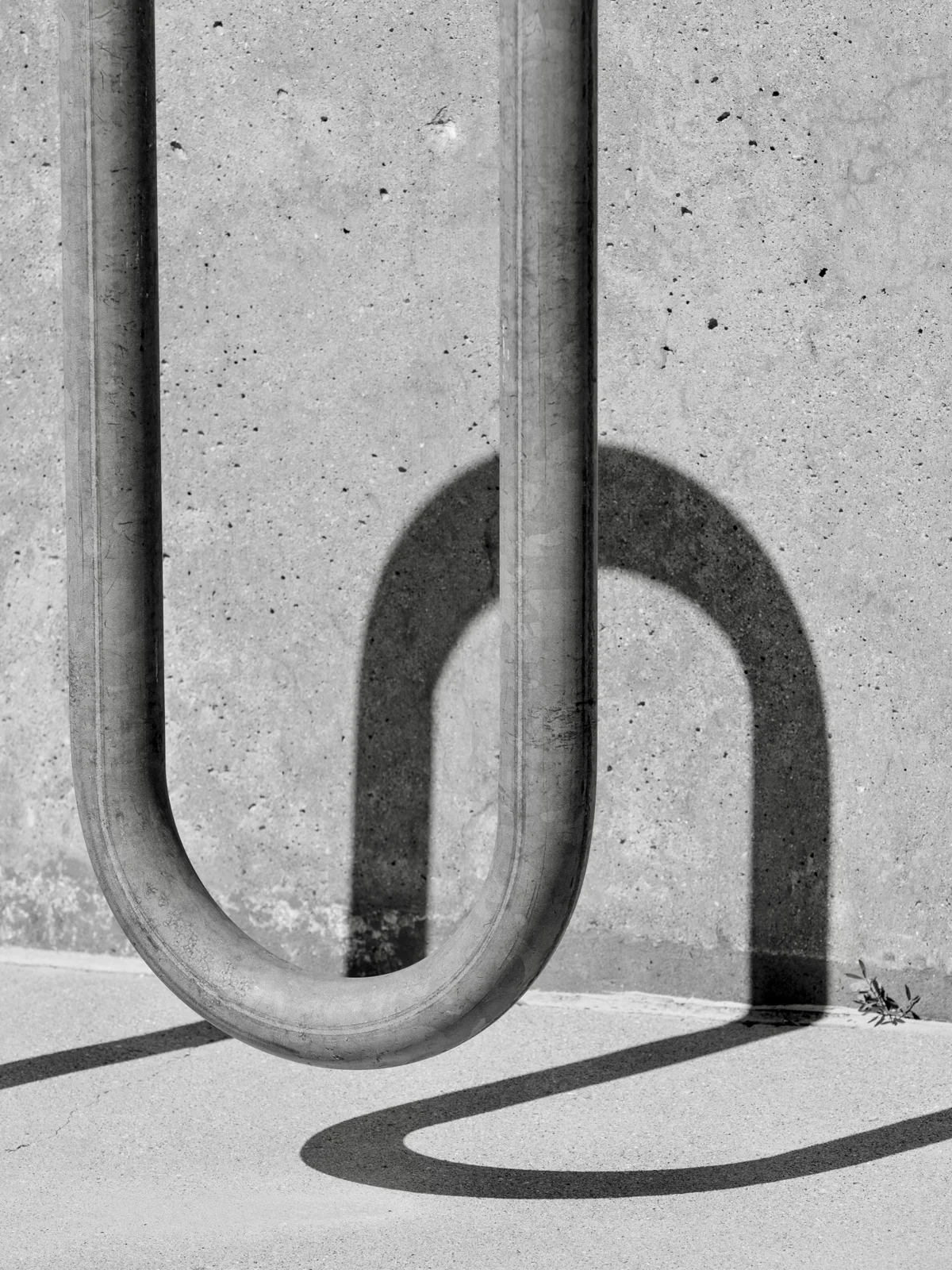 This photograph was made on a walk and was just an exercise in composition. The bike rack and its shadow make for a simple yet satisfying frame.