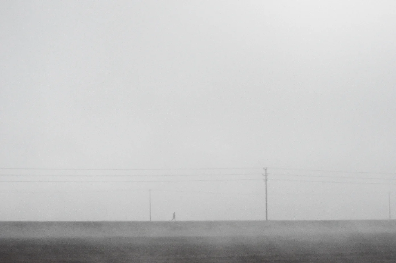 A man walking in fog